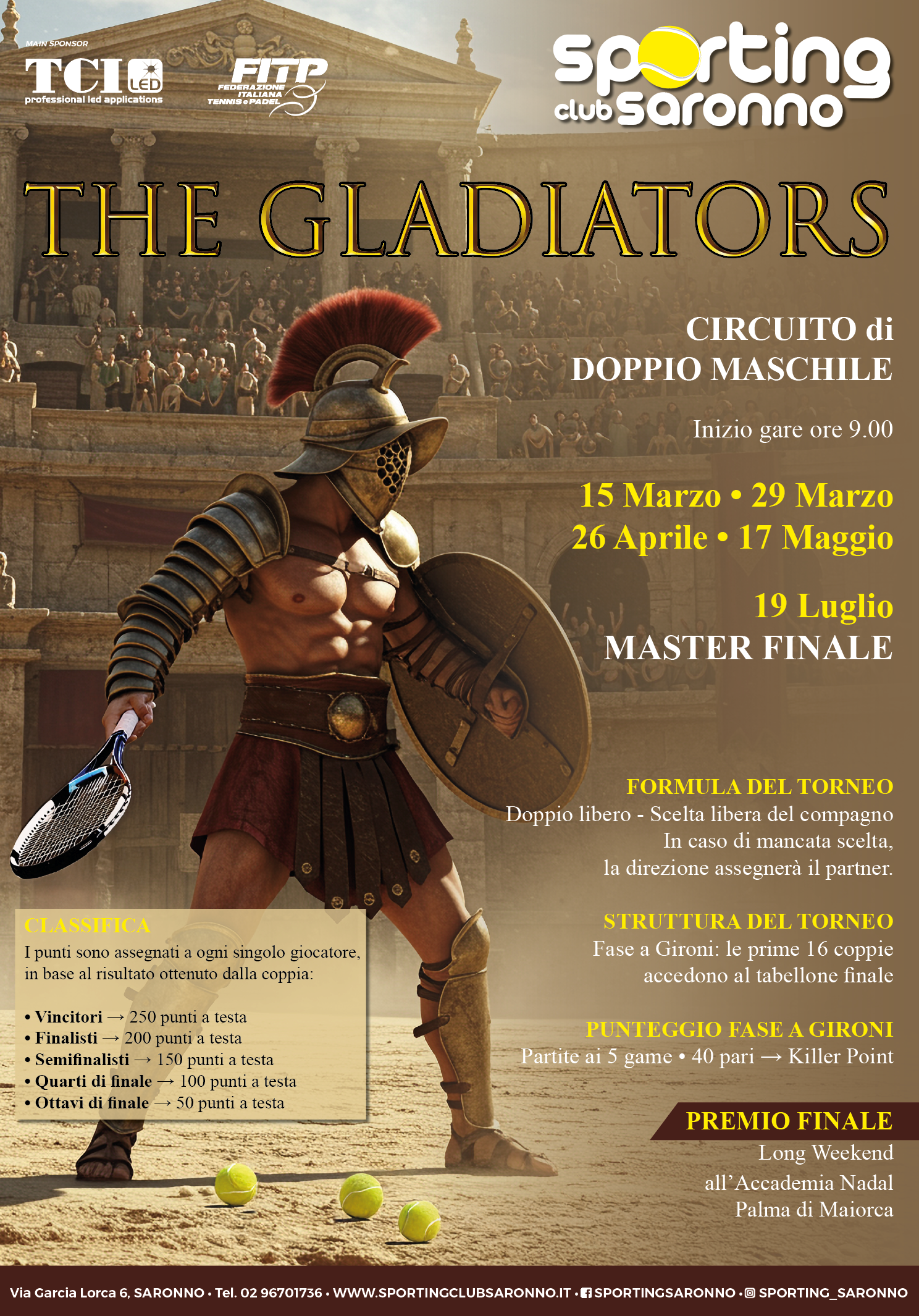 Ha inizio la grande sfida tra soci un circuito di vero divertimento con più tappe per sfidarvi nell'arena dello sporting, un'iniziativa unica in Italia per divertirsi insieme fino all'ultimo match point . Iscrizioni aperte non perdete l'occasione! Costo iscrizione 15 euro cad a torneo. VI ASPETTIAMO TUTTI.